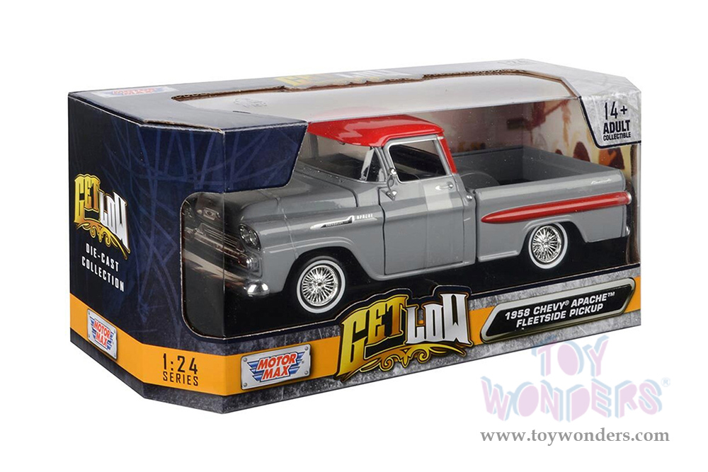 Motormax Get Low - Chevrolet® Apache™ Fleetside™ Pickup (1958, 1/24 scale diecast model car, Gray/Red) 79033WL
