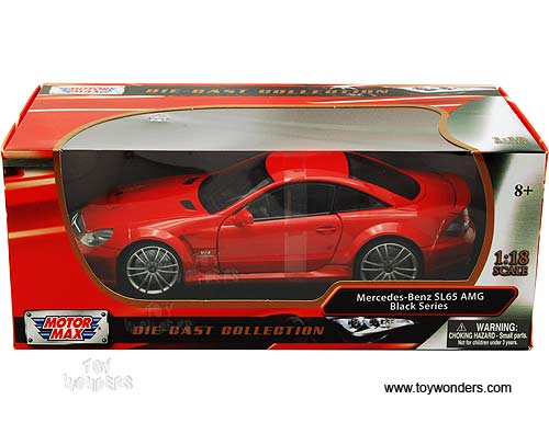 79161 Motormax - Mercedes-Benz SL65 AMG Black Series Hard Top. 1:18 scale diecast collectible model car. This Mercedes-Benz SL65 AMG Black Series is a 9.75"Lx 4"Wx 2.5"H diecast metal car with openable doors, hood & trunk. Sits on a display plaque. Individually packed in a window box. Box size: 12"Lx 6.25"Wx 4.75"H. 79161 is in RED color. This Mercedes-Benz SL65 AMG Black Series is manufactured by Motor Max.