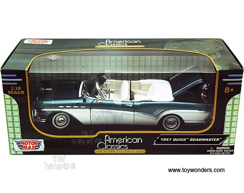 Motormax Premium American - Buick Roadmaster Convertible (1957, 1/18 scale diecast model car, Blue & White) 73152