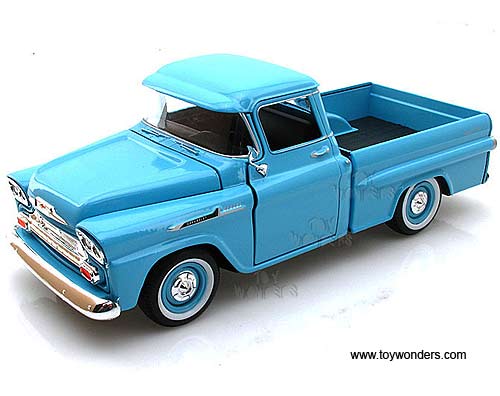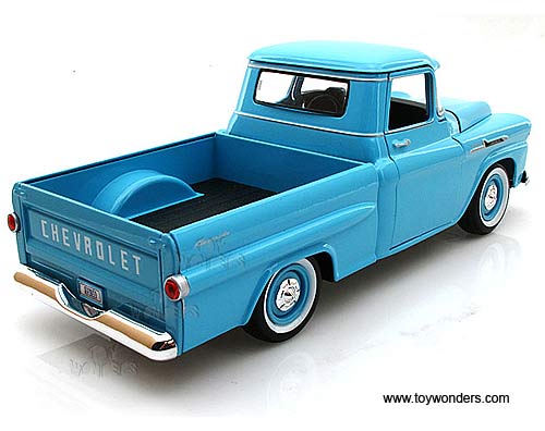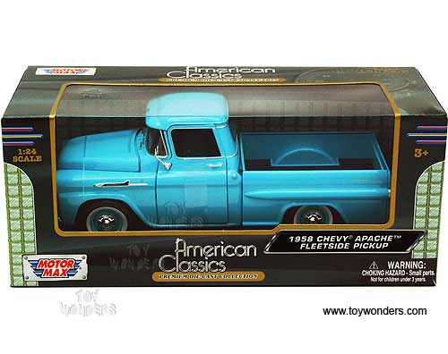 Motormax Premium American - Chevy Apache Fleetside Pickup Truck (1958, 1/24 scale diecast model car, Light Blue) 79311