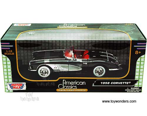 Motormax Premium American - Chevy Corvette Convertible (1958, 1/18 scale diecast model car, Black) 73109