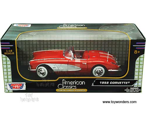 Motormax Premium American - Chevy Corvette Convertible (1958, 1/18 scale diecast model car, Red) 73109
