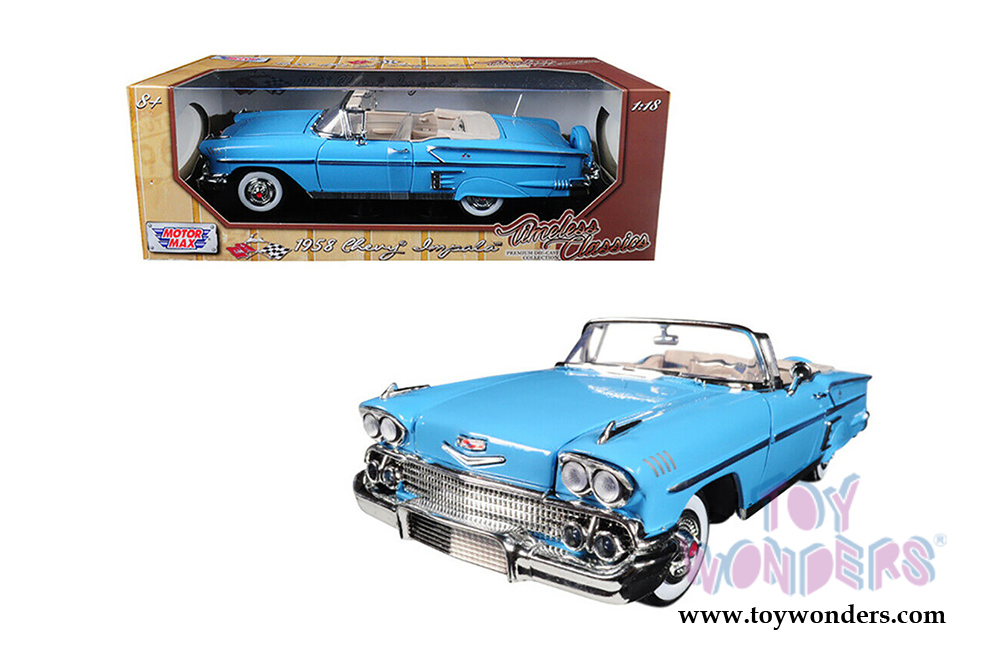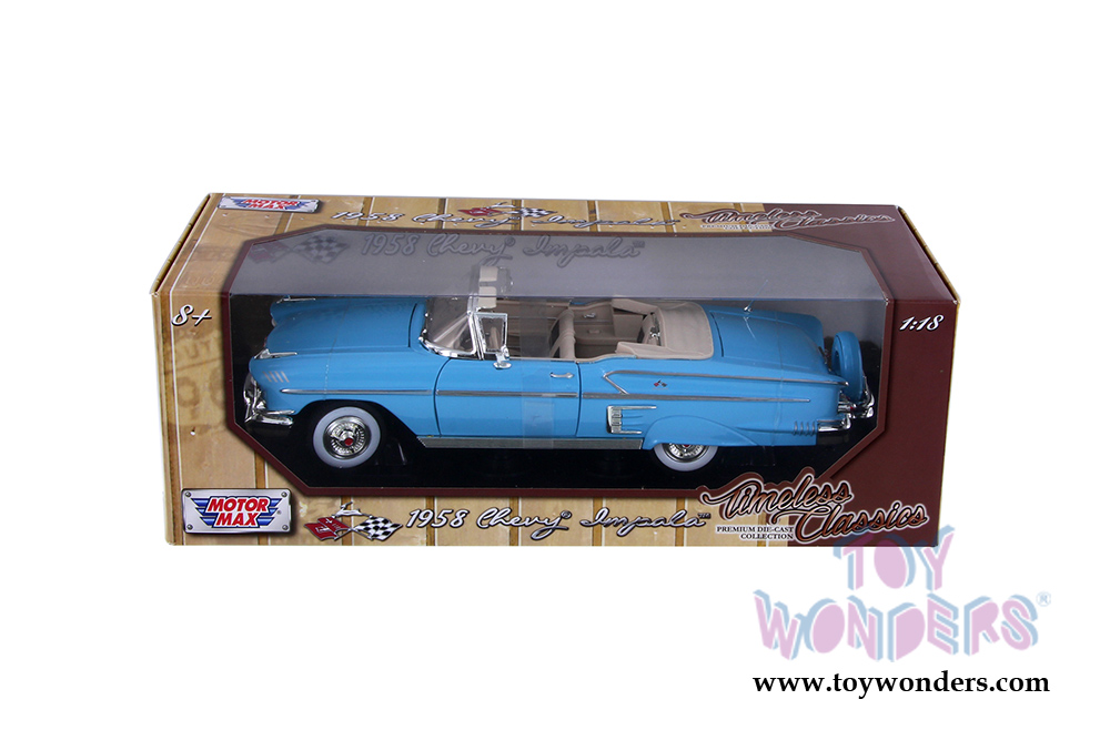 Motormax Timeless Classics - Chevy® Impala™ Convertible (1958, 1/18 scale diecast model car, Blue) 73112TC/BU