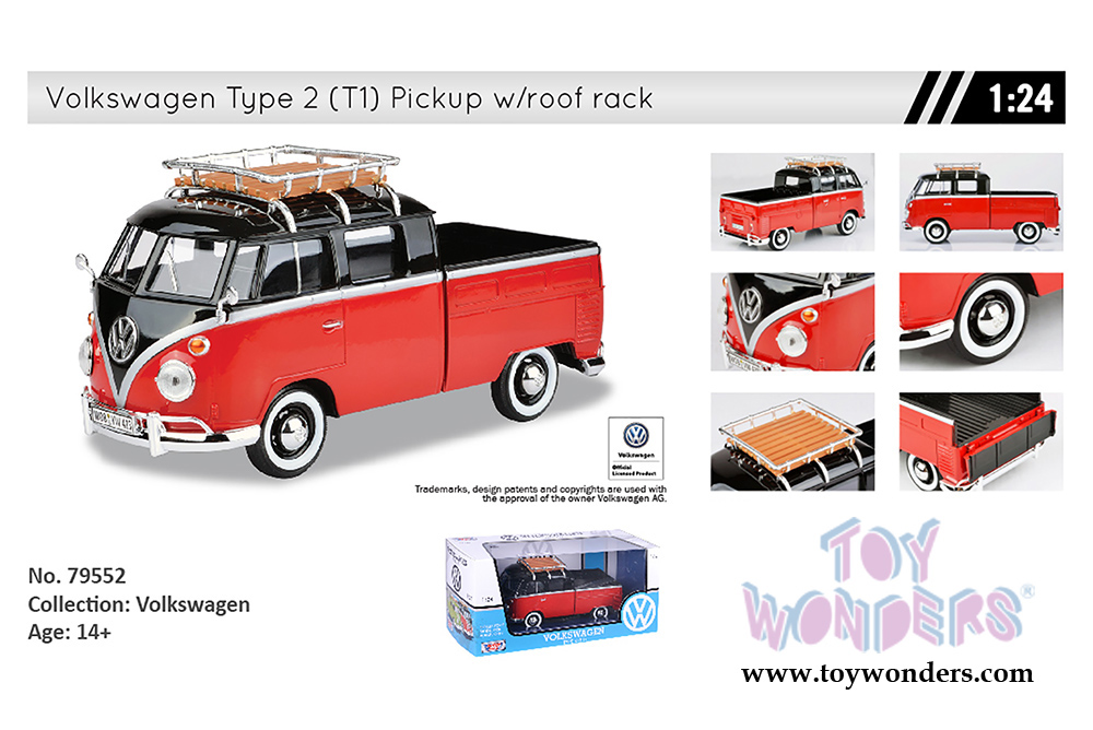 Motormax - Volkswagen Type 2 (T1) Delivery Van with Roof Rack (1/24 scale diecast model car, Red/Black) 79552RDBK