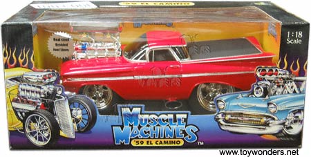 61193ER FUNLINE 1959 Muscle Machine Chevrolet El Camino. 1:18 scale diecast model car. This 1959 Chevy El Camino has real steel braided fuel lines. This 59 Chevy El Camino is manufactured by Funline. 61193 in RED color.Case pack: 6 pcs.Price quoted is for 1 pcs.