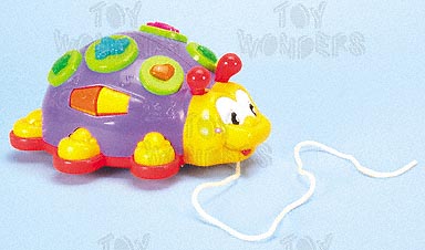 652 My Beetle Walk Along. 12" light-up musical creature on wheels. Head and legs move when animal is pulled. In a TRY ME box. Includes 2 "AA" batteries. Box size: 13"Lx 9.5"Wx 6.5"H. 6 pcs/inner.