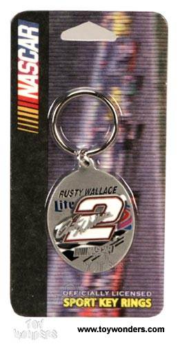 K-NK3 Nascar - Rusty Wallace #2 Key Chain. 3.25" long keychain. Individually blister carded. Card size: 2.5"Wx 5"H.