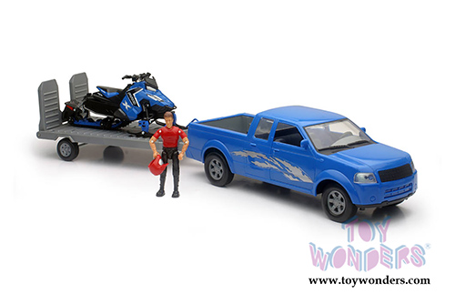 New Ray - Pick Up Truck with Trailer and Polaris Switchback Snowmobile with Articulated Figure Set (1/18 scale diecast model car, Blue) SS-37406A