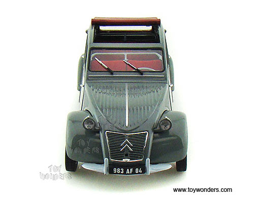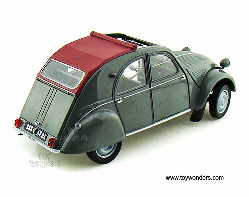 181509 Norev - Citroen 2CV AZLP. 1:18 scale diecast collectible model. This Citroen 2CV AZLP is an 8.25"L x 3"W x 3.25"H die-cast metal car with openable hood, doors & trunk. Sits on a display plaque. Item 181509 is in GREY color. This Citroen 2CV AZLP is manufactured by Norev. Individually packed in a window box. Box size: 12.75"L x 6.5"W x 5.75"H.