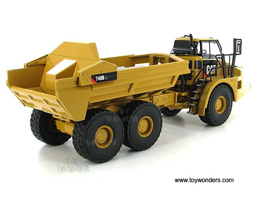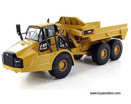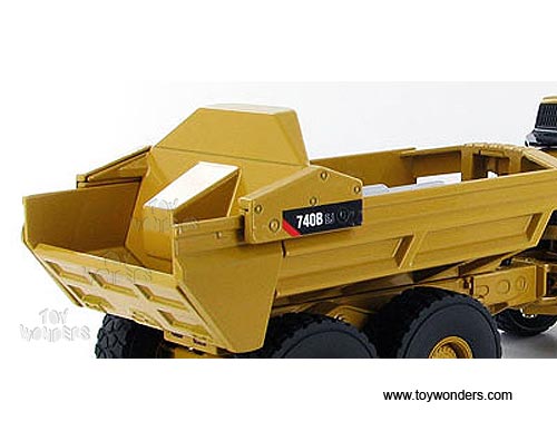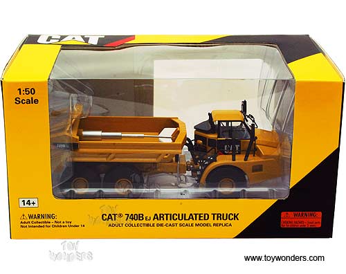 55500 Norscot - Cat 740B EJ Articulated Truck. 1:50 scale diecast collectible model. This Caterpillar 740B EJ Articulated Truck is a 9-3/8"L x 2-7/8"W x 3"H die-cast metal model. Manufactured by Norscot. 55500 is in YELLOW color. Individually packed in a window box. Box measures 11"L x 6"W x 5.75"H.