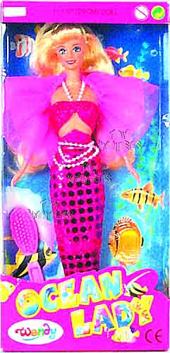 3351 Ocean Lady Doll Set. 11.5" fashion mermaid doll in a glimmering outfit with accessories. Assorted styles. Box size: 6"Lx2.25"Wx12.5"H. 12 pcs/inner.
