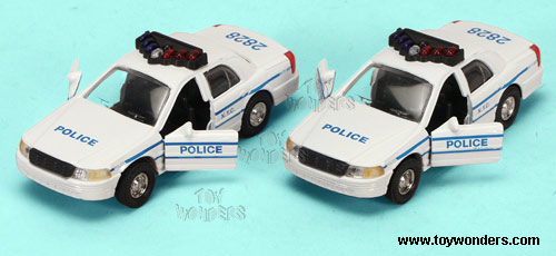 9985NY Police Car. This 5" long diecast police car features openable doors and pull-back motor action. 12 pcs per display box and in WHITE color. 72 pcs per inner box.