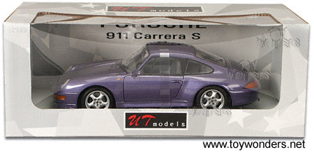 27828 UT Models Porsche 911 Carrera. 1:18 scale diecast model. This Porsche 911 Carrera is a 9" long diecast sports car with opening doors/hood/trunk and detailed component and engine. Display stand.