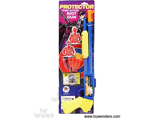 99008/4 Protector Pump Action Riot Gun. This play set includes an 18.5" long gun, soft bullets, police badge and targets. Card size: 6.5" x 21". 24 pcs/inner.