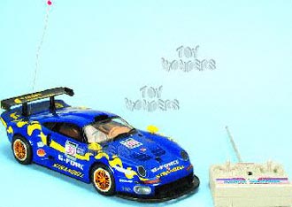 GP898 Porsche 911 GT1. 15" dual channel radio controlled racing car. Full function allows the sports car to be driven in all directions with turbo speed. requires 1 "9V" & 8 "AA" batteries. 18 kilometer/hour. Frequency 27MHz. Box size: 20.75"L x 9.75"W x 8.5"H. Note: This item contains no any diecast metal.