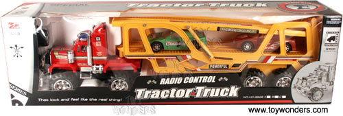 9828B Tractor Truck - Car Carrier with Cars. 31" radio controlled car carrier with cars, includes rechargeable batteries and 120V charger. Requires 1 "9V" battery (included). Note: This item contains no any diecast metal.