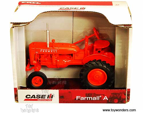 14676 RC2 ERTL Case IH Agriculture - Farmall A Farm Tractor. 1:16 scale diecast collectible model. This Farmall A Farm Tractor is a 6"L x 3.5"W x 4.75"H die-cast tractor. Individually packed in a window box. Box size: 7.75"L x 4.75"W x 5.75"H. This Farmall A Farm Tractor is manufactured by RC2 Brands. Item 14676 is in ORANGE color.
