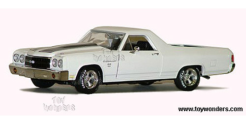 39223W ERTL American Muscle - 1970 Chevy El Camino SS. 1:18 scale diecast collectible model car. This Chevy El Camino is an 11.25" long die cast pick-up truck with openable doors & hood, detailed interior/chassis/engine, adjustable front wheels, hard top, mounted on removable base, display window box. Limited Edition 1 of 2500 pcs. This 1970 El Camino is manufactued by RC2; ref. no. 39223 in CREAM (WHITE) color. GM is a trademark of the General Motors Corporation.