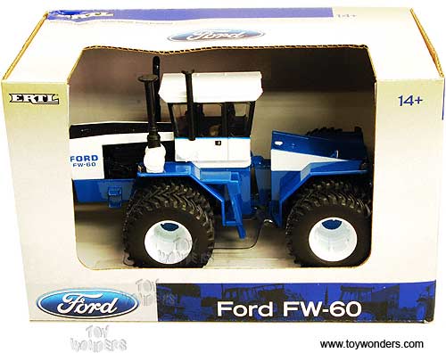 13764 RC2 ERTL - Ford FW-60 Farm Tractor. 1:32 scale diecast collectible model. This Ford FW-60 tractor is 8.25"L x 5.25"W x 5"H. Individually packed in a window box. Box size: 10"L x 6.25"W x 6.25"H. This Ford FW-60 farm tractor is manufactured by RC2 Brands. Item 13764 is in BLUE & WHITE 2-tone colors.