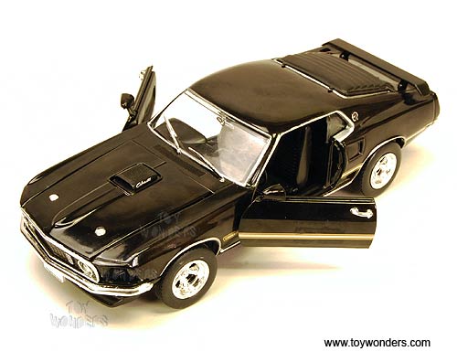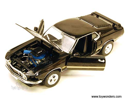 39457A ERTL - 1969 Ford Mustang Mach 1 Hard Top. 1:24 scale diecast collectible model car. This Ford Mustang is a 7.75"L x 3"W x 2"H die cast metal car with openable hood & doors. Turnable front wheels and free wheeling. This Ford is manufactured by RC2 Brands. Tray packed in clear plastic. 4 pcs per inner box. 39457A is in BLACK color.