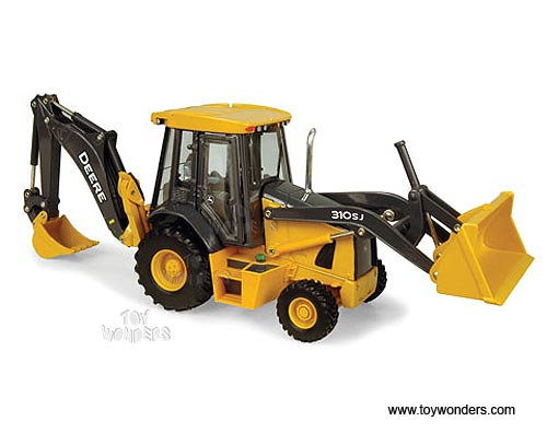 45027 RC2 ERTL John Deere - 310SJ Bsckhoe Loader Farm Tractor. 1:32 scale diecast collectible model. This 310SJ Bsckhoe Loader is 10"L x 2.75"W x 3.5"H. Individually packed in a window box. Box size: 11.5"L x 4"W x 4.5"H. This 310SJ Bsckhoe Loader farm tractor is manufactured by RC2 Brands. Item 45027 is in ORANGE color.
