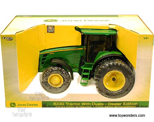 15879 RC2 ERTL John Deere - 8330 Farm Tractor with Duals. 1:16 scale diecast collectible model. This 8330 Farm Tractor is a 14"L x 10"W x 8"H die-cast tractor. Individually packed in a window box. Box size: 18"L x 11"W x 9.5"H. This 8330 Farm Tractor is manufactured by RC2 Brands. Item 15879 is in GREEN color.
