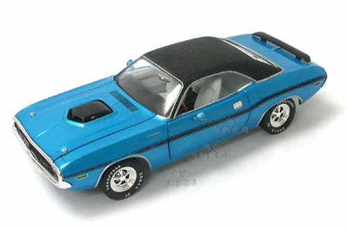 53758EBU JOHNNY LIGHTNING JL 1970 Dodge Challenger R/T. 1:24 scale diecast collection car. Opening doors and hood. New Tooling for 2006. Opening hood & doors. Window Box WB. 53758E in Bright BLUE color.