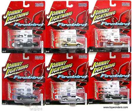 50159D JOHNNY LIGHTNING Firebird Assortment. 1:64 scale diecast model cars. GM is a trademark of the General Motors Corporation. Each car individually blister carded. Assortment includes: