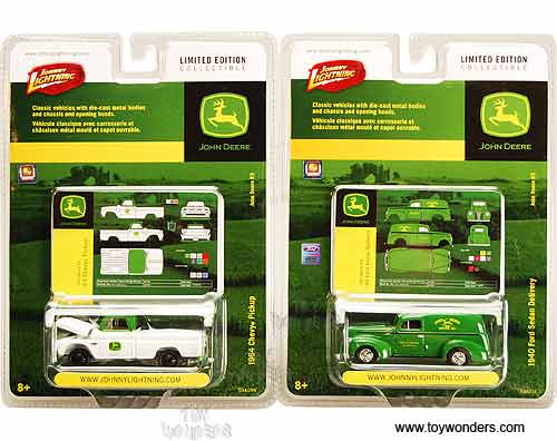 50702A RC2 Johnny Lightning JL - John Deere Release 3. 1:64 scale diecast collectible model cars. 3" long diecast car. These farm vehicles are manufactured by RC2 Brands. Each car individually blister carded. Card size: 5.75" x 7.75". GM is a trademark of the General Motors Corporation. Assortment includes the following cars:
