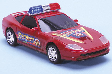 1383 Rescue Force / Fire Department. 10" bump-n-go fire department car with flashing lights and siren. Requires 2 "C" batteries not included. Box size: 10.5"W x 4"H x 5"D.