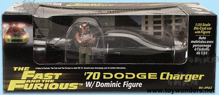 864962 REVELL - "The Fast and the Furious" Dodge Charger Scale: 1:25 Dimensions: 7.5"L x 2.5"W Dodge Charger die cast muscle car with opening hood and detailed engine. A 2.75" tall Dominic figure is included. Box: 10.5"L x 4"H x 5.5"W Color: Black