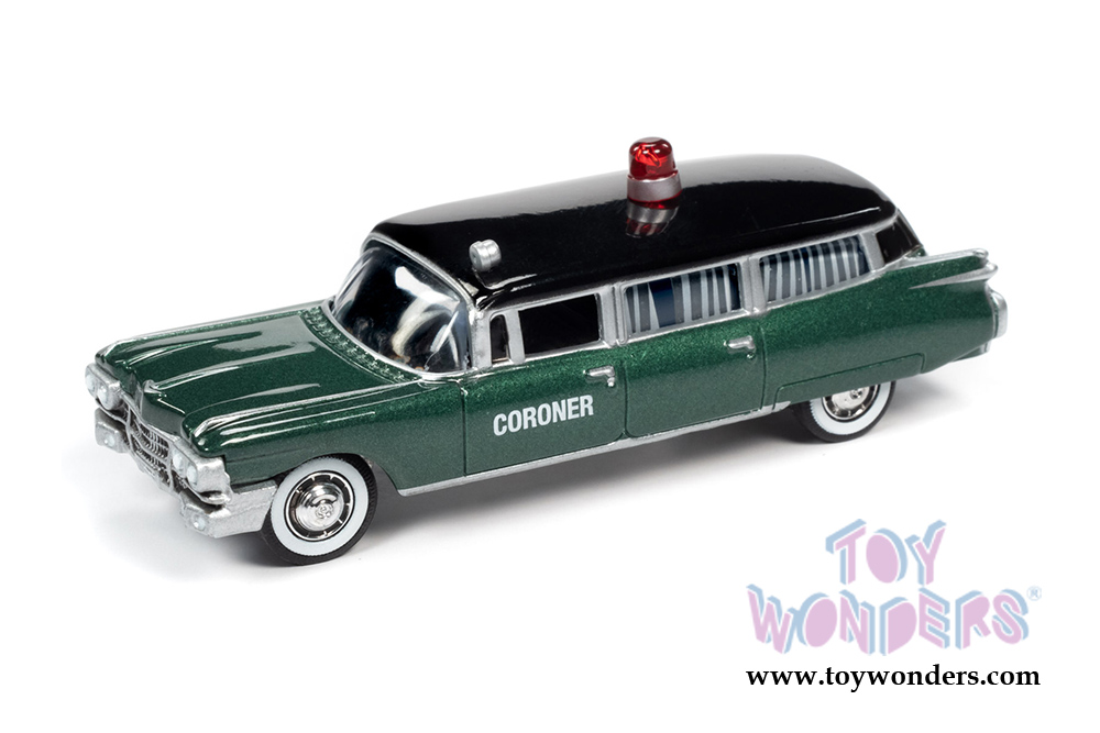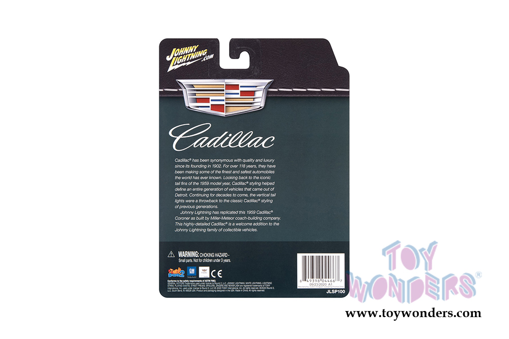 JLSP100/24 Round 2 Johnny Lightning - 1959 Cadillac® Coroner. 1:64 scale diecast collectible model. 6-car set. These cars are 3.25" long. Special Edition. 6 pcs/inner. Manufactured by Round 2. Each car individually blister carded. Card size: 5.5" x 7.5". Item JLSP100/24 is in Green with Black top.