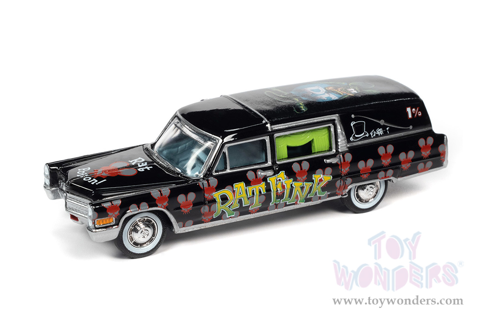 Round 2 Johnny Lightning - Cadillac® Hearse Rat Fink (1966, 1/64 scale diecast model car, Black) JLSP142/24