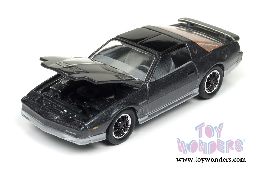 JLCG011/24B Round 2 Johnny Lightning - Classic Gold 2017 | 1985 Pontiac® Firebird® T/A Hardtop. 1:64 scale diecast collectible model. 6-car set. These cars are about 3" long. Authentic factory colors and openable hoods. Vehicles match photo card images. Special Edition 1 of 1800. 6 pcs/inner. Manufactured by Round 2. Each car individually blister carded. Card size: 5.5" x 7.5". Item JLCG011/24B is in Medium Gray Poly color with Silver.
