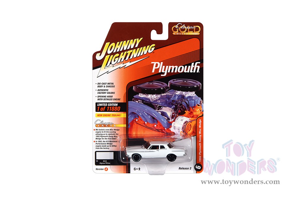 Round 2 Johnny Lightning - Classic Gold 2022 Release 2 Set B | Plymouth Savoy Max Wedge (1962, 1/64 scale diecast model car, Alpine White) JLSP248/24B