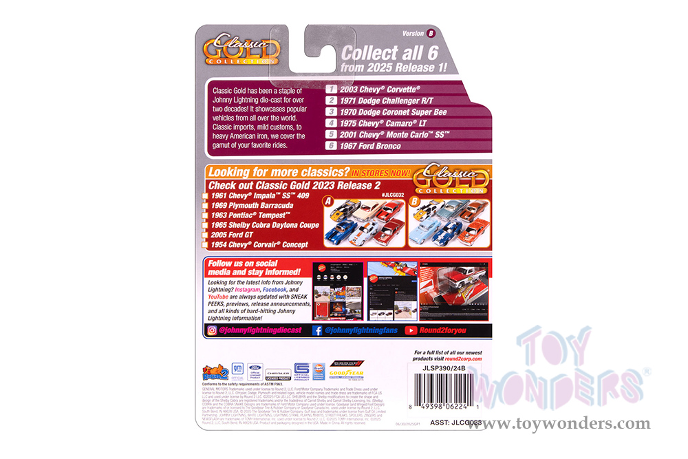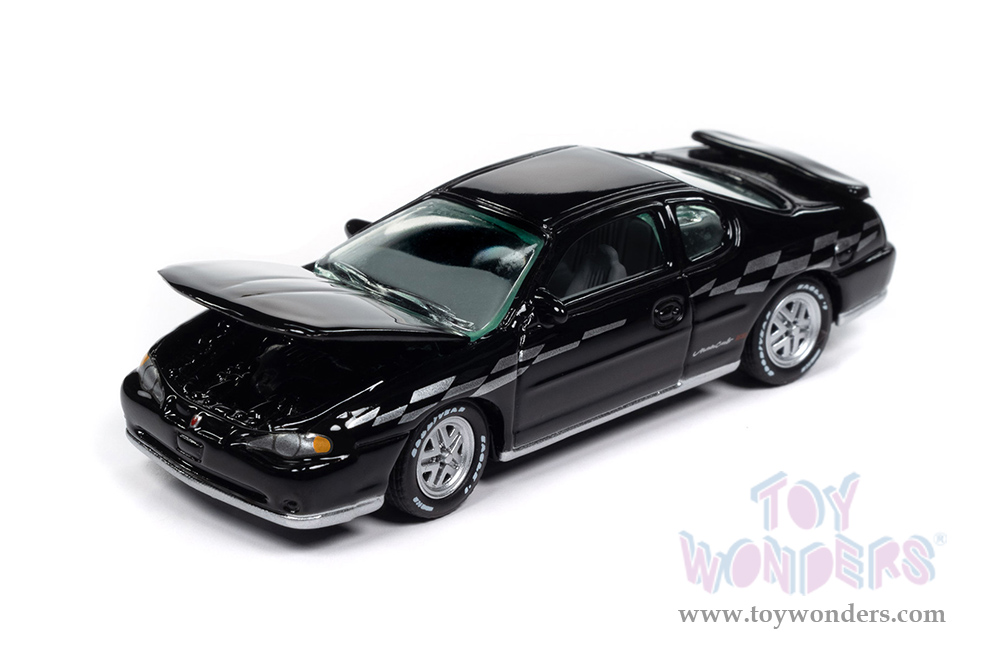 Round 2 Johnny Lightning - Classic Gold Collection | Chevy® Monte Carlo™ SS™ (2000, 1/64 scale diecast model car, Gloss Black w/Silver Checkered Flag Side Stripe) JLSP391/24B MAP: $9.49