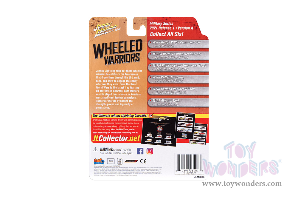 Round 2 Johnny Lightning - Military 2021 Release 1 Set A - Wheeled Warriors (1/64, 1/100 scale diecast model car, Asstd.) JLML006/48A