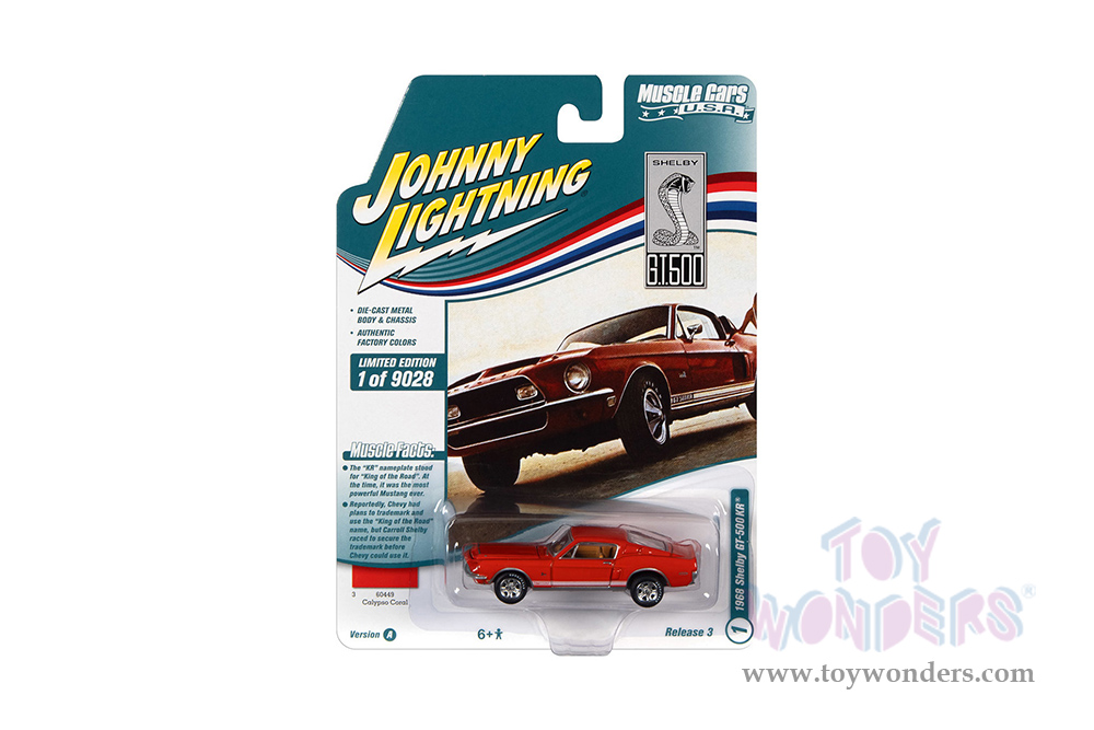 Round 2 Johnny Lightning - Muscle Cars U.S.A. | Shelby GT-500KR® (1968, 1/64 scale diecast model car, Calypso Coral w/White Rocker Stripes) JLSP172/24A