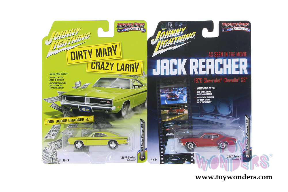 Muscle Cars U.S.A. and Silver Screen Machines have combined for 2017 Release 3! These iconic muscle cars have revved up the silver screen in movies ranging from cult classics to recent box office blowouts! To this day, Vanishing Point features some of the most famous chase scenes ever filmed. The Citron Yella 1969 Dodge Charger from Dirty Mary, Crazy Larry is easily one of the most recognizable movie cars of the past 50 years. Lastly, audiences worldwide cringed when Jack Reacher smashed up the red 1970 Chevelle in a high-speed chase!