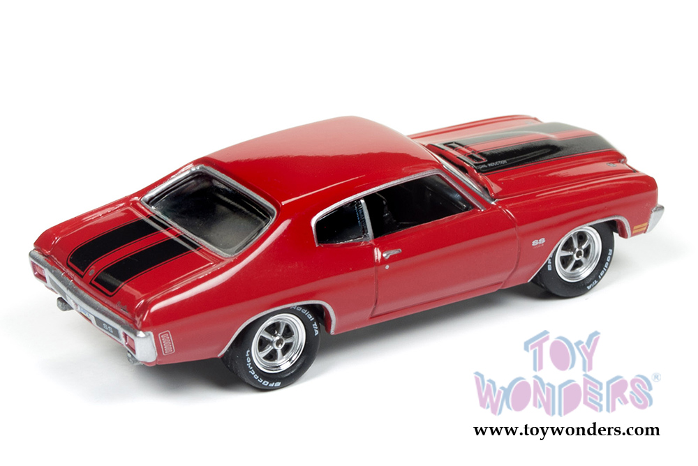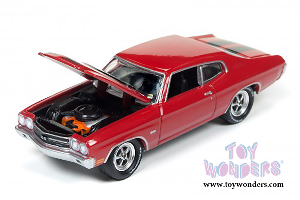 JLMC005/12A Round 2 Johnny Lightning - Muscle Cars USA 2017 | Silver Screen Release 3 Set A. 1:64 scale diecast collectible model car. These cars are approx. 3" long, authentic factory colors, opening hoods, 6-Car Set, factory sealed case and limited edition. GM is a trademark of the General Motors Corporation. Manufactured by Round 2. Each car individually blister carded. Card size: 5.5" x 7.5".