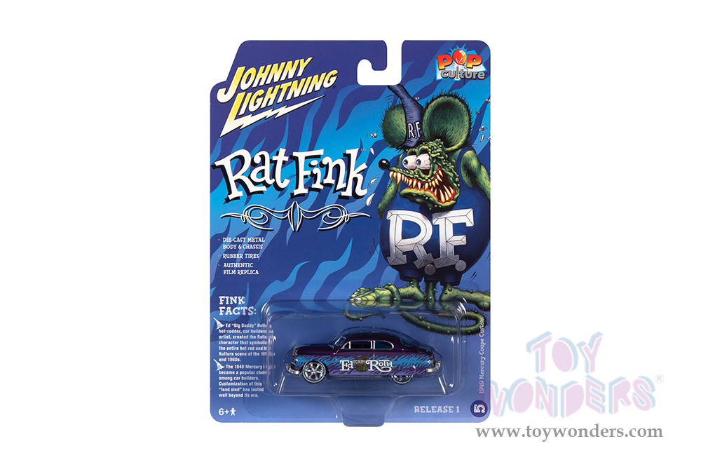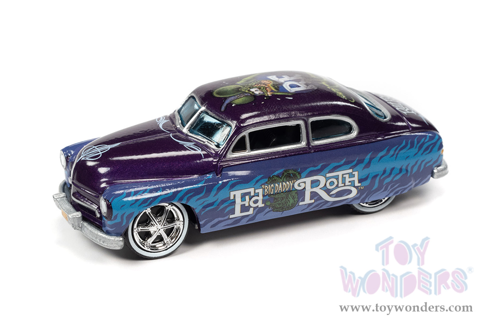 Round 2 Johnny Lightning - Pop Culture Series | Rat Fink Mercury Coupe Custom (1949, 1/64 scale diecast model car, Purple) JLSP238/24