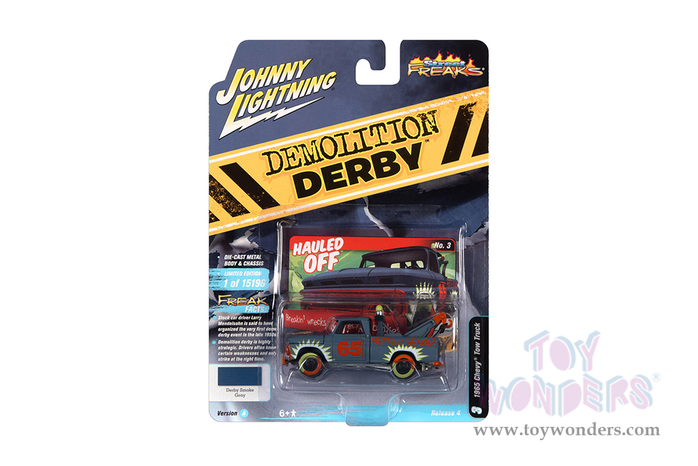 Round 2 Johnny Lightning - Street Freaks 2021 Release 4 Set A | Chevrolet® Tow Truck - Demolition Derby (1965, 1/64 scale diecast model car, Derby Smoke Gray) JLSP209/24A