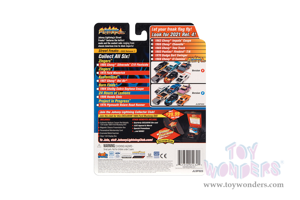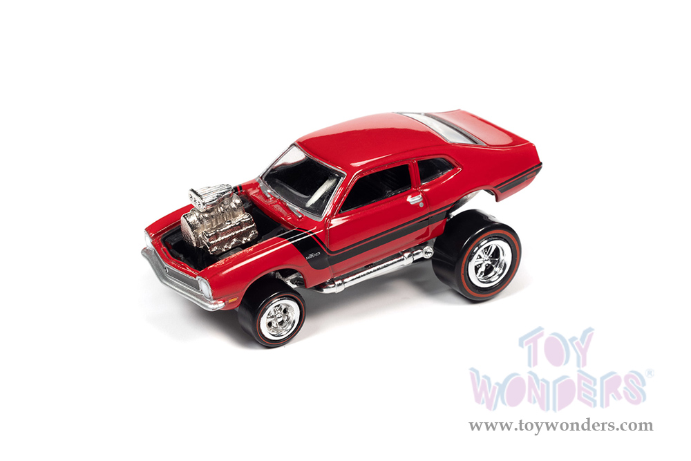 Round 2 Johnny Lightning - Street Freaks 2022 Release 1 Set A | Ford Maverick - Zingers! (1972, 1/64 scale diecast model car, Bright Red w/Black Stripe) JLSP229/24A