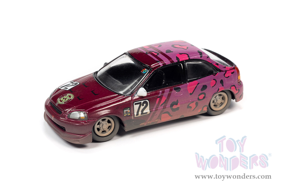Round 2 Johnny Lightning - Street Freaks 2022 Release 1 Set B | Honda Civic #72 - 24 Hrs of Lemons (2019) (1998, 1/64 scale diecast model car, Magenta Metallic w/Fuchsia Leopard Print) JLSP232/24B