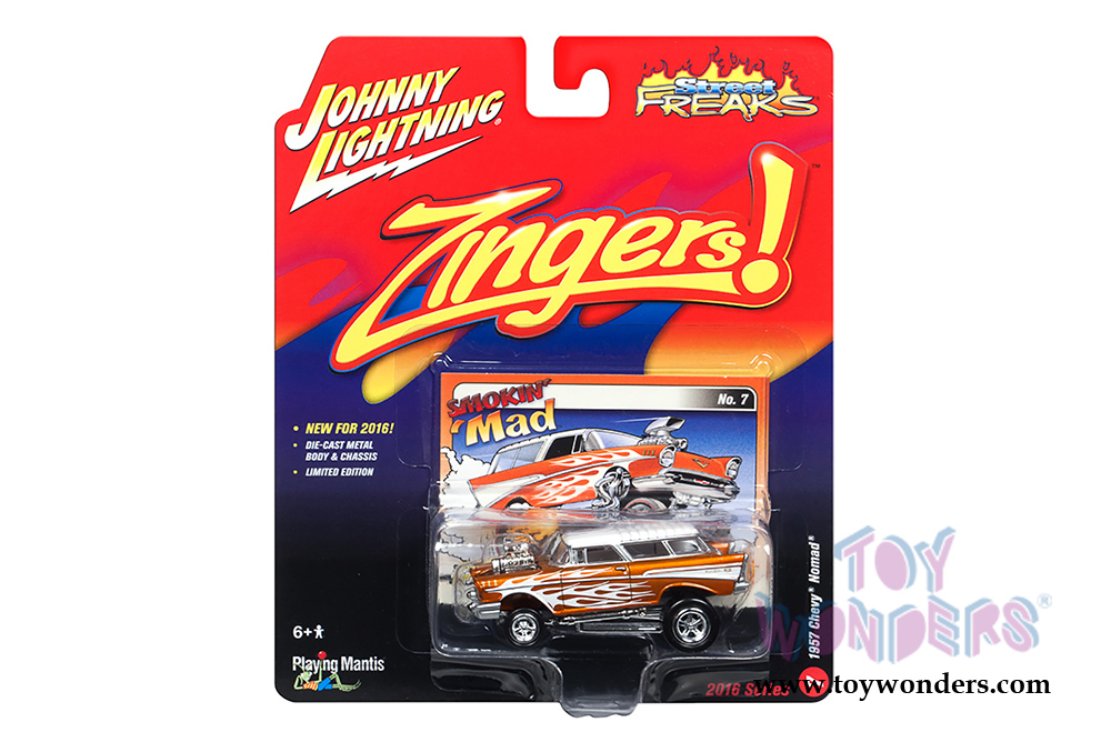Johnny Lightning® is now back in the hands of the Playing Mantis team of developers and designers that resurrected the Topper Toys brand back in 1994! We are excited to re-introduce these iconic diecast vehicles! Loud graphics, hot customs, and sizzling flames have returned to the Johnny Lightning line-up with the Street Freaks! Whether you’re into high-speed and blown engines, the secret underworld of car culture, or insane flame paint jobs, these freaks will fuel your need for horsepower.