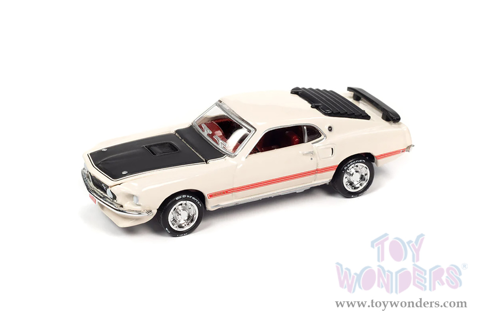 • 1969 Ford Mustang Mach 1 White and Black with Orange Stripes.