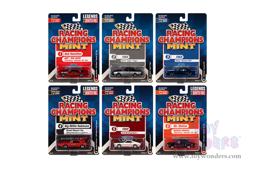 RC013/48 Round 2 Racing Champions Mint 2022 Release 1. 6-car set. 1:64 scale diecast collectible model car. These cars are between 2.75" and 3.25" long, authentic factory colors, diecast metal body and chassis, detailed Interior. limited edition. GM is a trademark of the General Motors Corporation. Manufactured by Round 2. Each car individually blister carded. Card size: 5.5" x 7.5".
