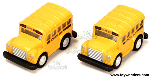 210D School Bus. This school bus is a 2"Lx 1"Wx 1"H diecast metal car with pullback action. 24 pcs per display box in YELLOW color. 144 pcs per inner box.
