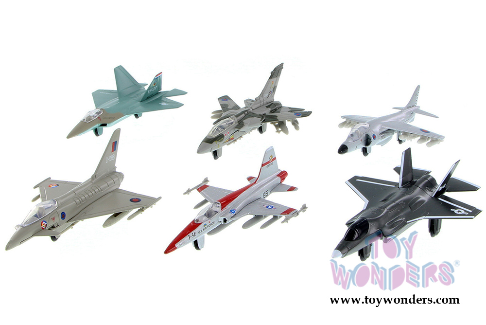 77000DT/E Showcasts Collectibles - Aircraft Assortment E. Assorted scale diecast collectible models. These military airplanes are approximately 5" long with free wheeling. 6 pcs per display box in assorted styles.  Assortment includes: