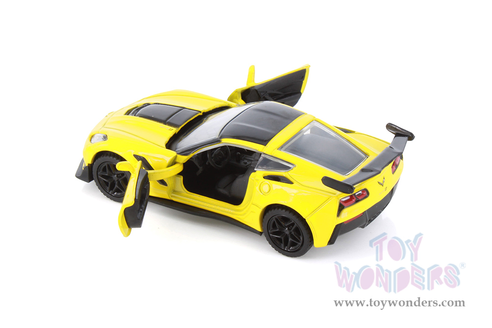 73678D Showcasts® Collectibles - 2019 Chevrolet® Corvette® ZR-1 Hardtop. 5" scale diecast collectible model car. This Chevy® is a 4.5"Lx 2"Wx 1.25"H diecast metal car with openable doors and pullback action. This Corvette® is distributed by Showcasts® Collectibles. 12 pcs per display box in assorted colors. 88 pcs per inner box.